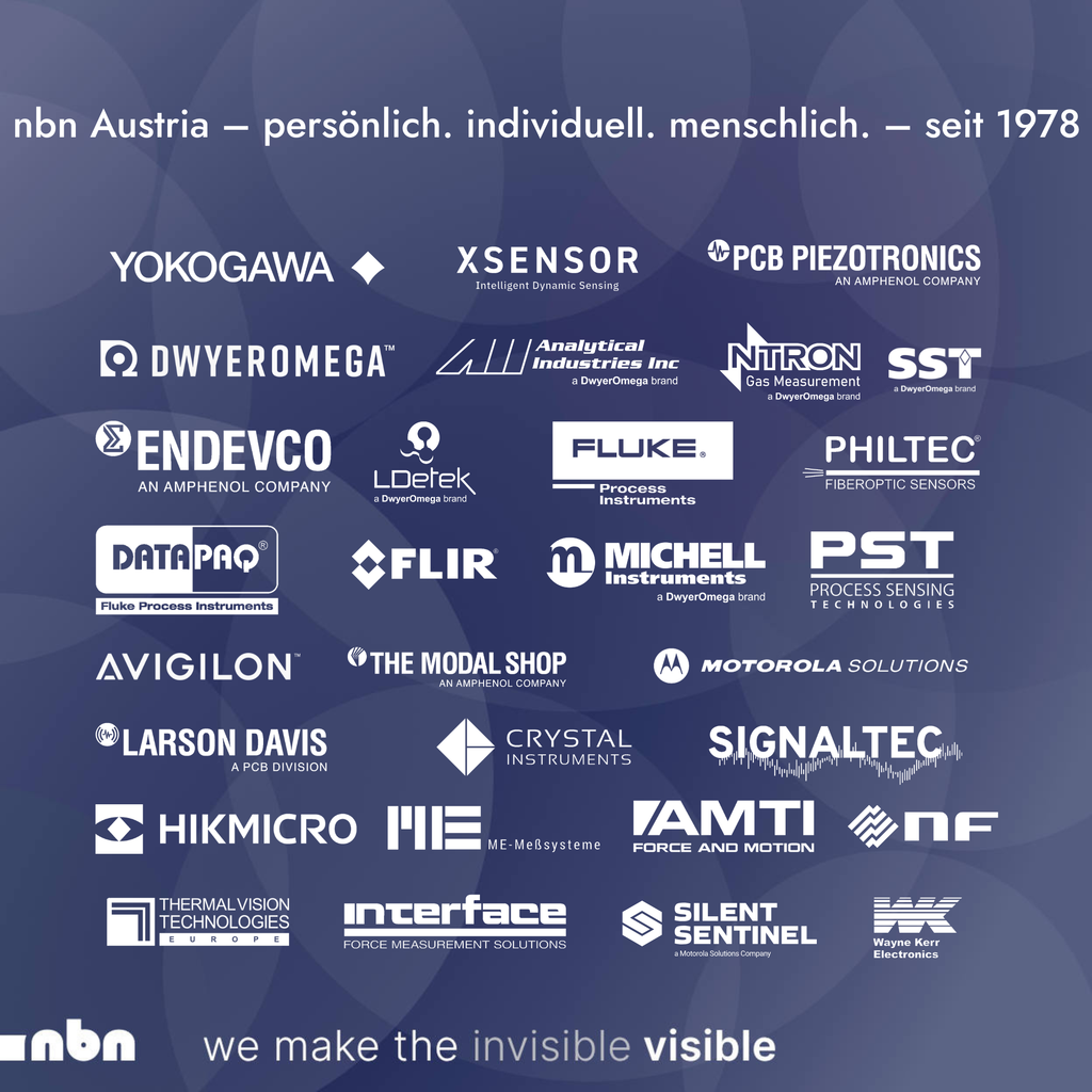 Wir, das Team der nbn Austria, stehen Ihnen seit 1978 und somit bereits mehr als 45 Jahren mit unseren Produkten in den Bereichen Messtechnik, Prüfen & Kalibrieren, Sensorik und Thermografie zur Seite. Mit Hilfe unserer Kompetenz, langjährigen Erfahrung und individuellen Kundenbetreuung suchen wir mit Ihnen gemeinsam nach der für Sie besten Messlösung.